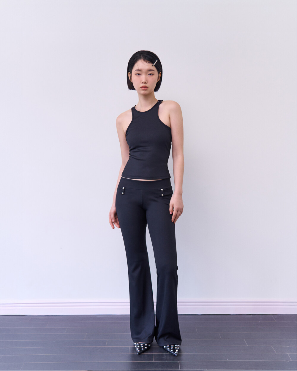 SNAP BUTTON BELT LOOP PANTS_BLACK