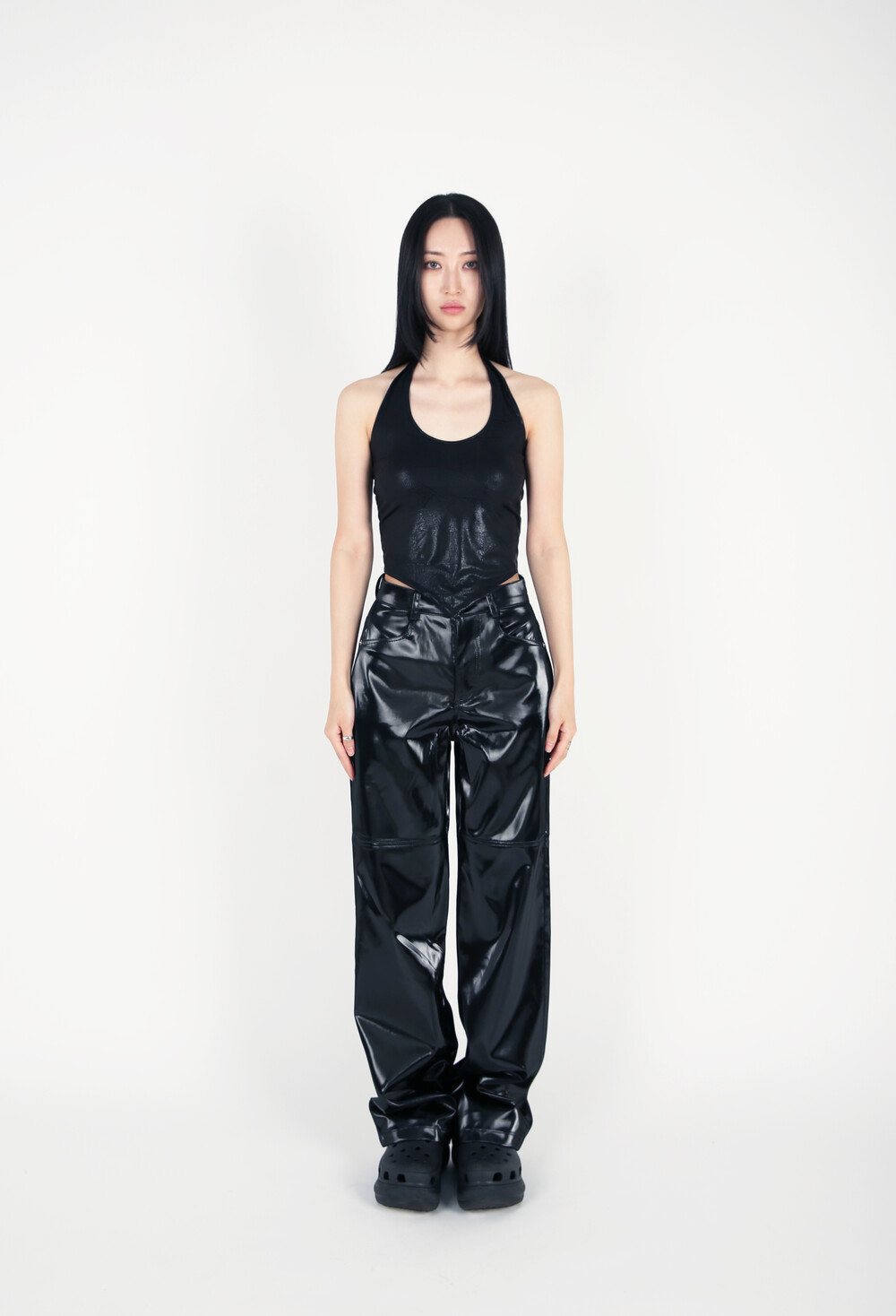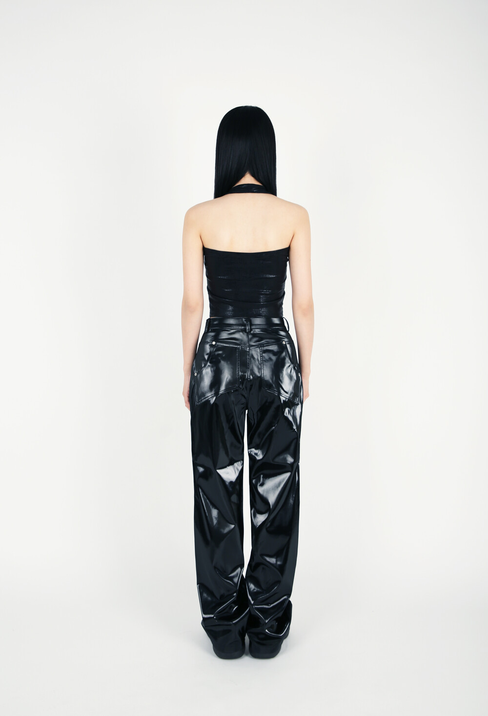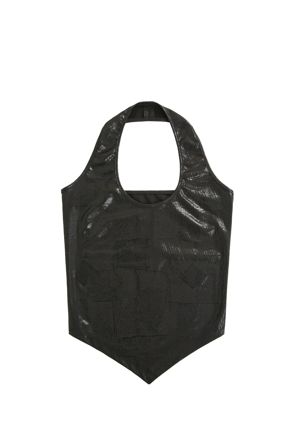 PATCHED PATTERN HALTER NECK_BLACK