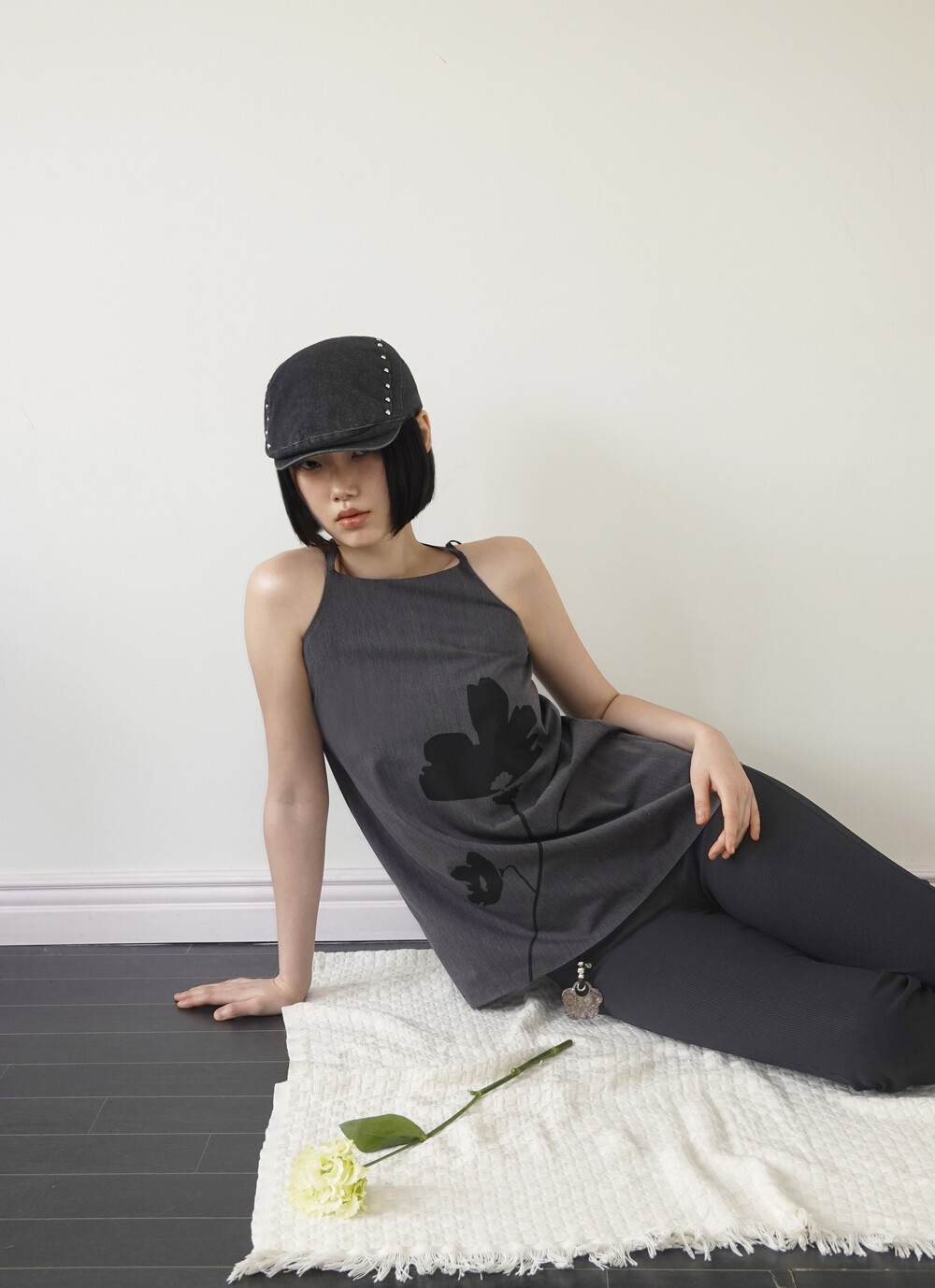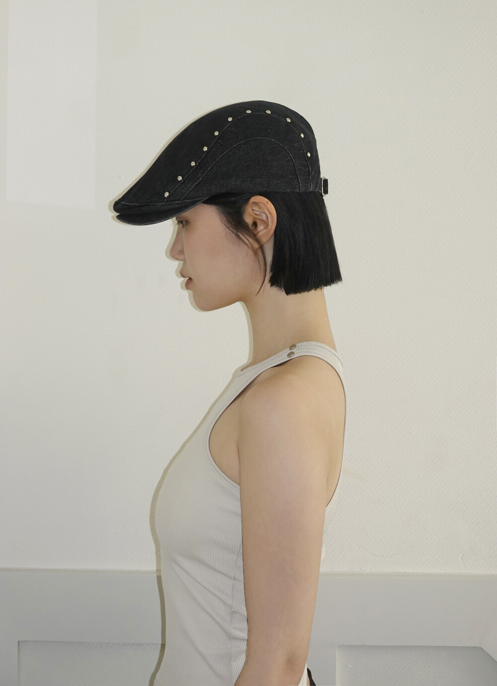 SNAP BUTTON HUNTING CAP_BLACK DENIM