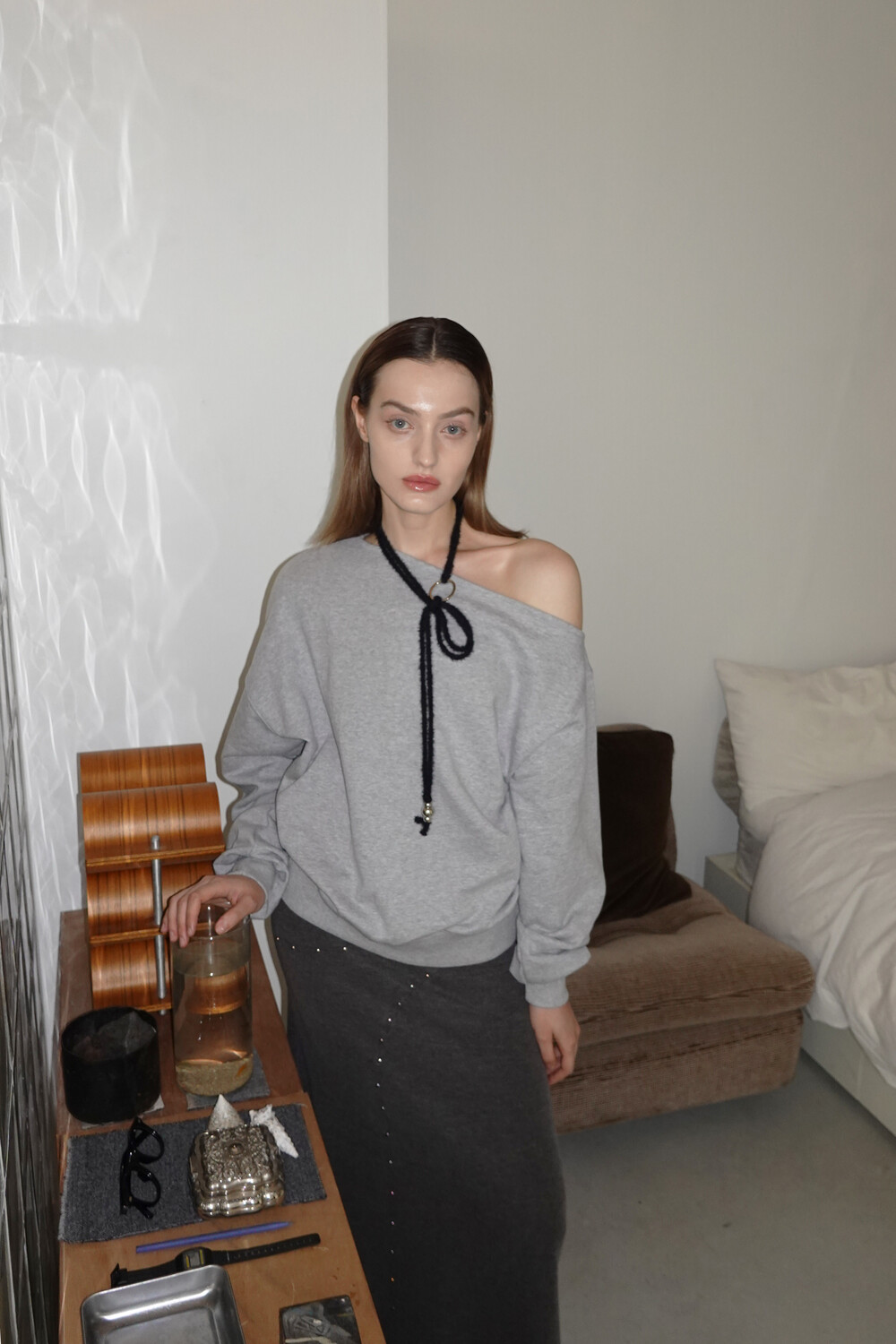 UNBALANCE BELT SWEAT SHIRTS_MELANGE