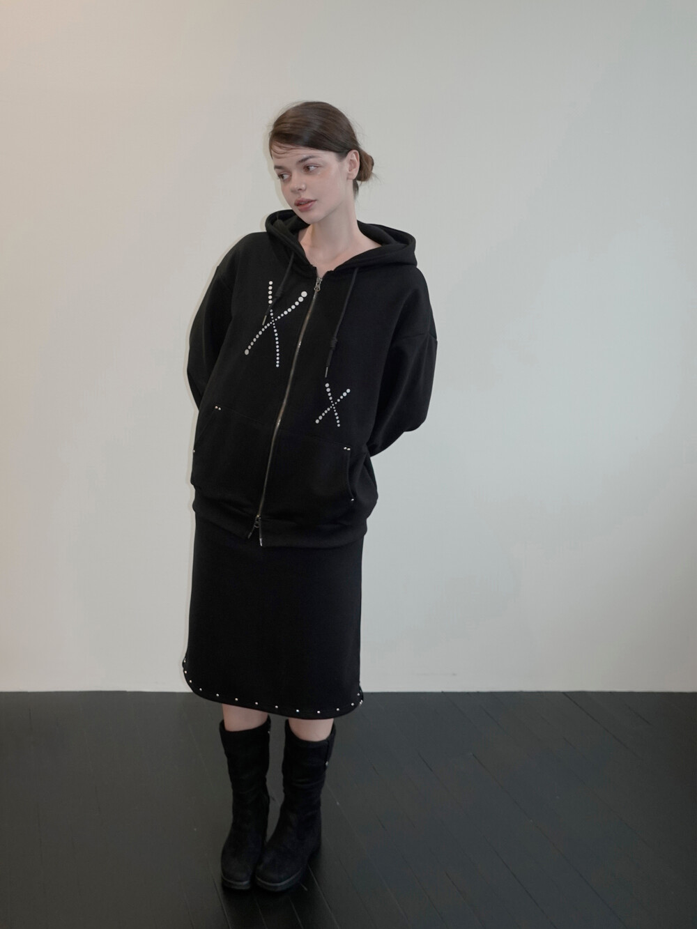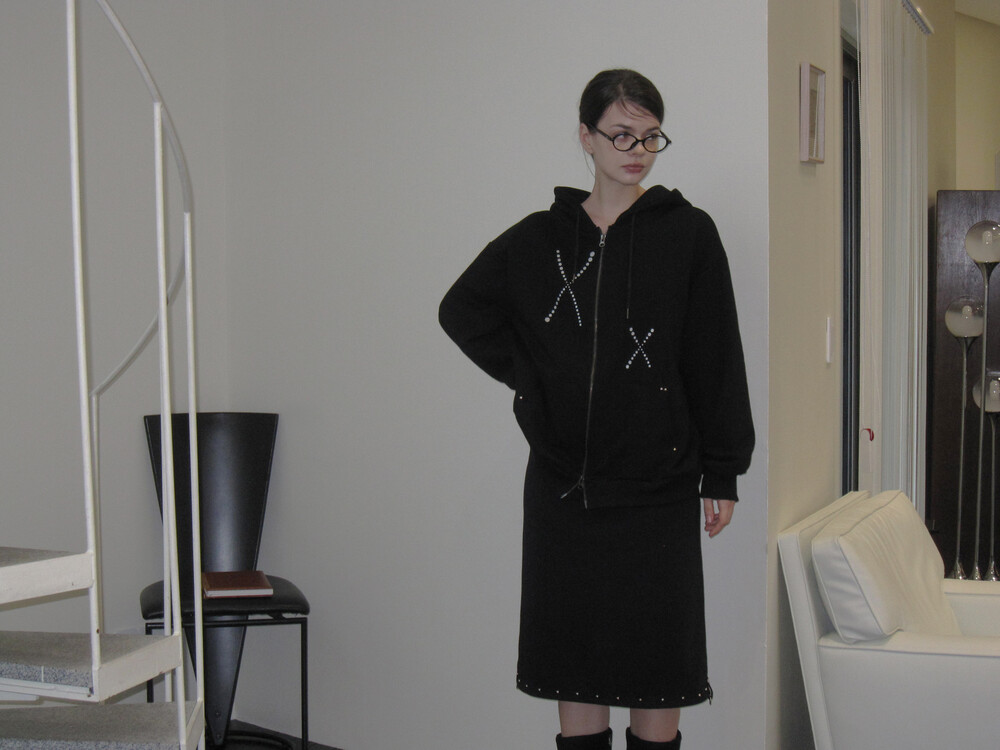 DOTS STUD HOODIE_BLACK